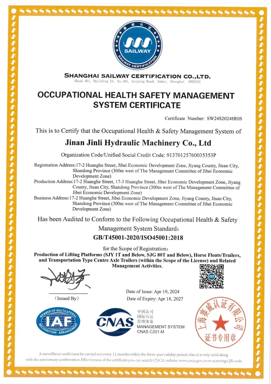 職業(yè)健康安全管理體系認證證書