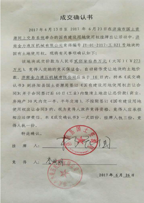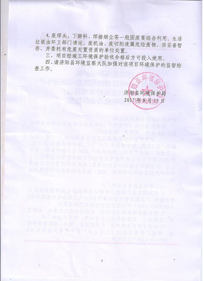 2.5《關(guān)于濟(jì)南金力液壓機(jī)械有限公司新建年產(chǎn)立體停車庫2000 臺項目環(huán)境影響報告表批復(fù)》(濟(jì)陽縣環(huán)境保護(hù)局,濟(jì)陽環(huán)報告表[2017]86號,2017年8月15日);
