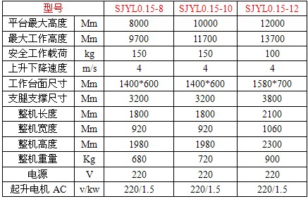3、 使用該機前首先空升一次,仔細觀察各部位是否正常有無異常聲音,一經(jīng)發(fā)現(xiàn),應停止使用;由維修人員調(diào)試好后使用(電器元件保修三個月)。三、 日常維護保養(yǎng):